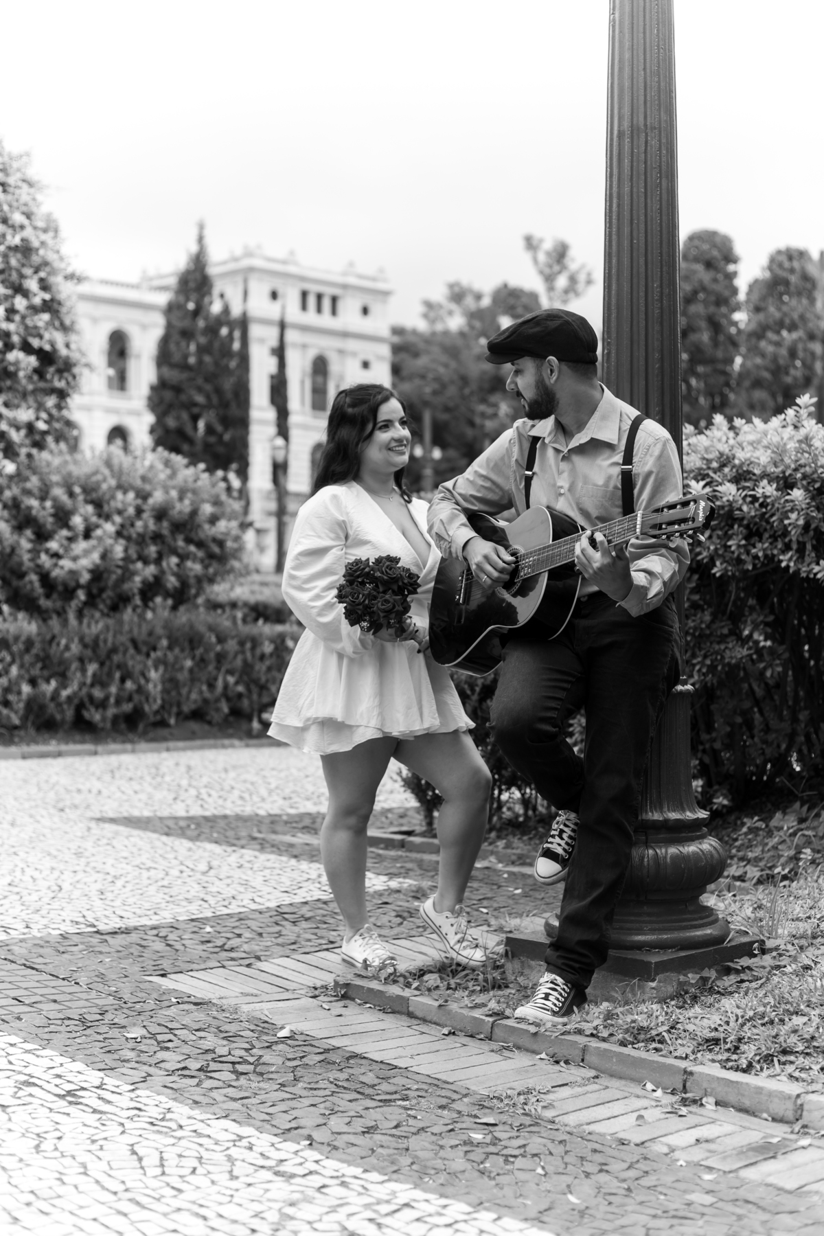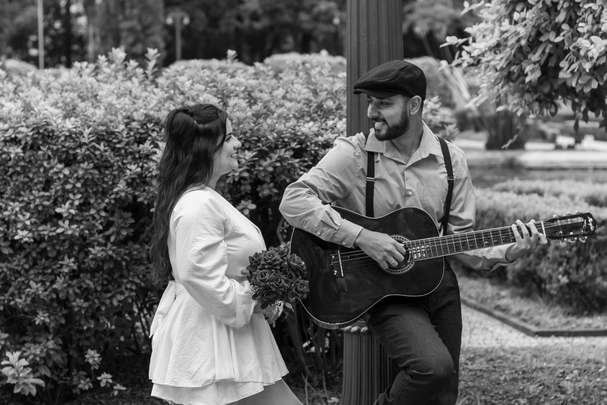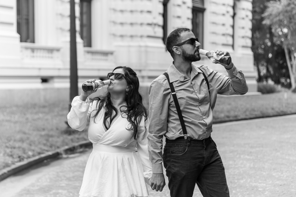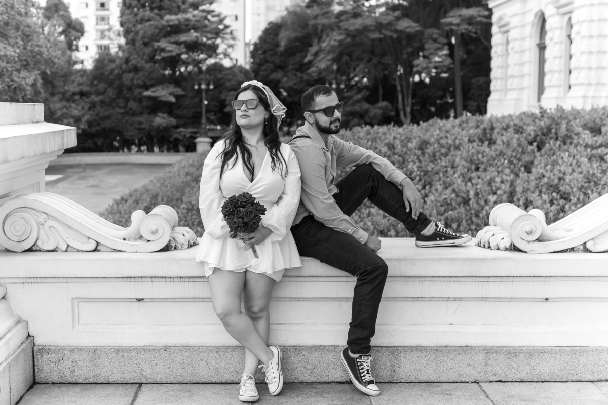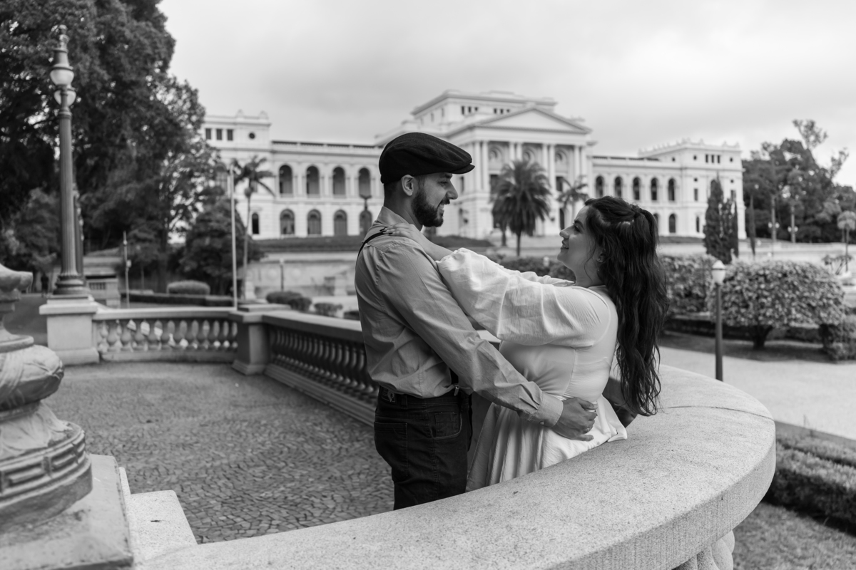 Escolheram o Museu do Ipiranga como cenário para um pré-wedding com a cara deles: leve, autêntico e cheio de conexão. Teve tênis, cervejinha, carinho e até música — Rafael levou o violão e tocou para Monize, em um momento íntimo e emocionante.